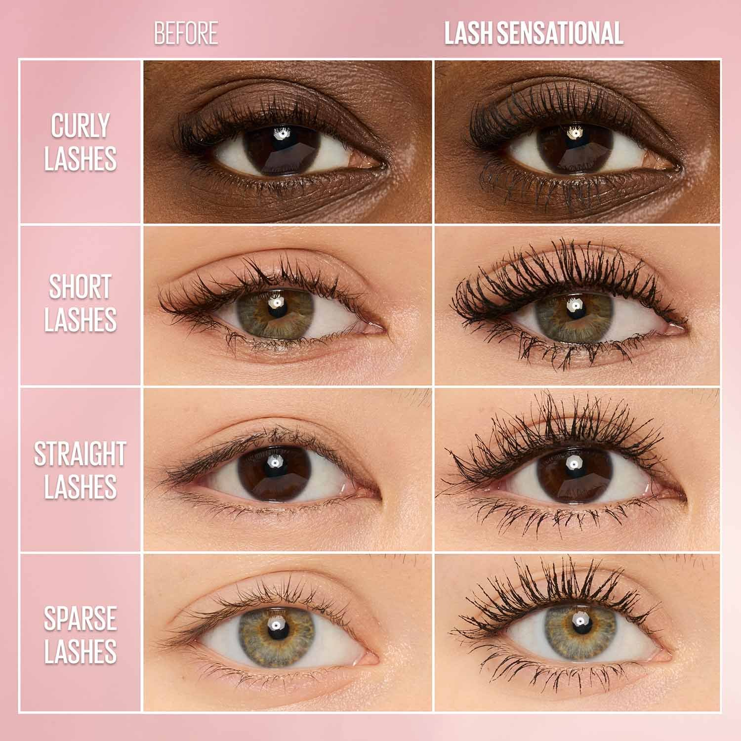 Lash Sensational® Washable mascara unfolds layers of lashes for a sensational full fan effect, thanks to its exclusive fanning brush with ten layers of bristles. This cult-favorite mascara delivers supple, separated lashes that never feel weighed down. Now introducing the New Midnight Black shade; infused with Rose Hip Oil to condition the lashes for an even softer feel.